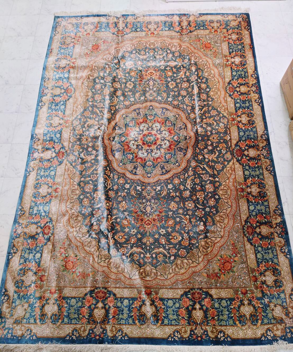 シルク製の絨毯は肌触りが良く、玄関マットなどに最適です。また、ウール製の絨毯は弾力性に富んでおり、踏まれても繊維が寝てしまうこともなく、踏まれるほどに光沢感が現れ、味が出てきます。